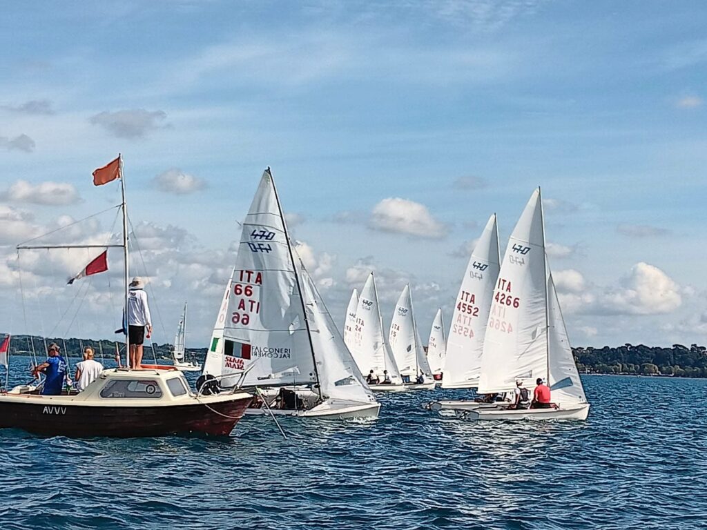 Le prime due giornate – con vento sui 8/12 Kn – è stato posato un campo a bastone, ogni gommone ha seguito la classe di riferimento, tutti gli istruttori hanno provato le imbarcazioni e mostrato agli atleti le varie manovre di riferimento.
